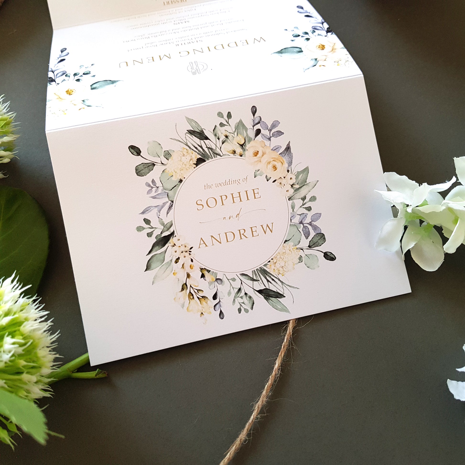 Our blue and white floral wreath wedding invitations range is very popular due it's beautiful array of blue and white florals. Perfect for any wedding in any season makes it a great choice.