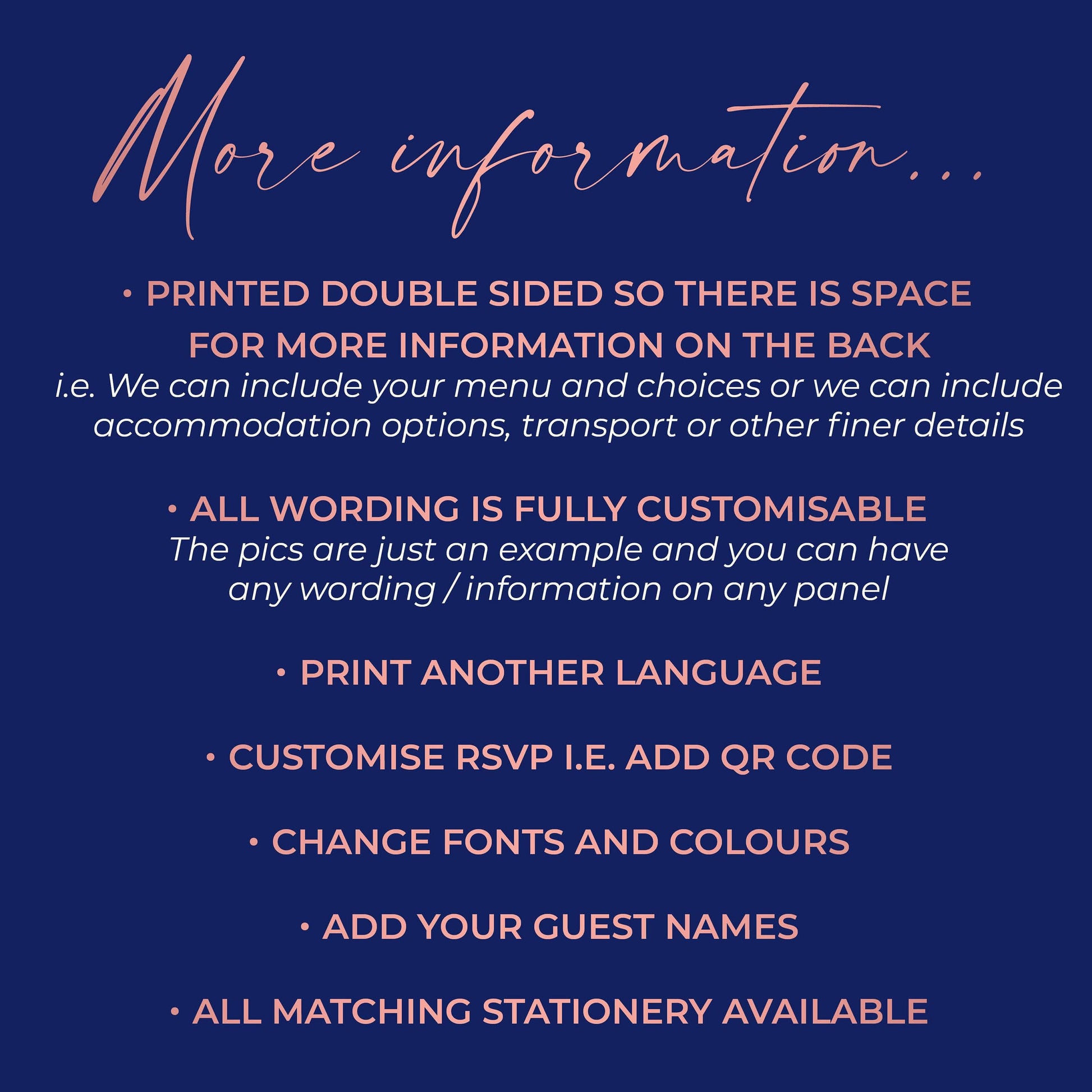 After you place your order, we’ll email you a simple online personalisation form with all the questions we need to create your perfect wedding stationery.