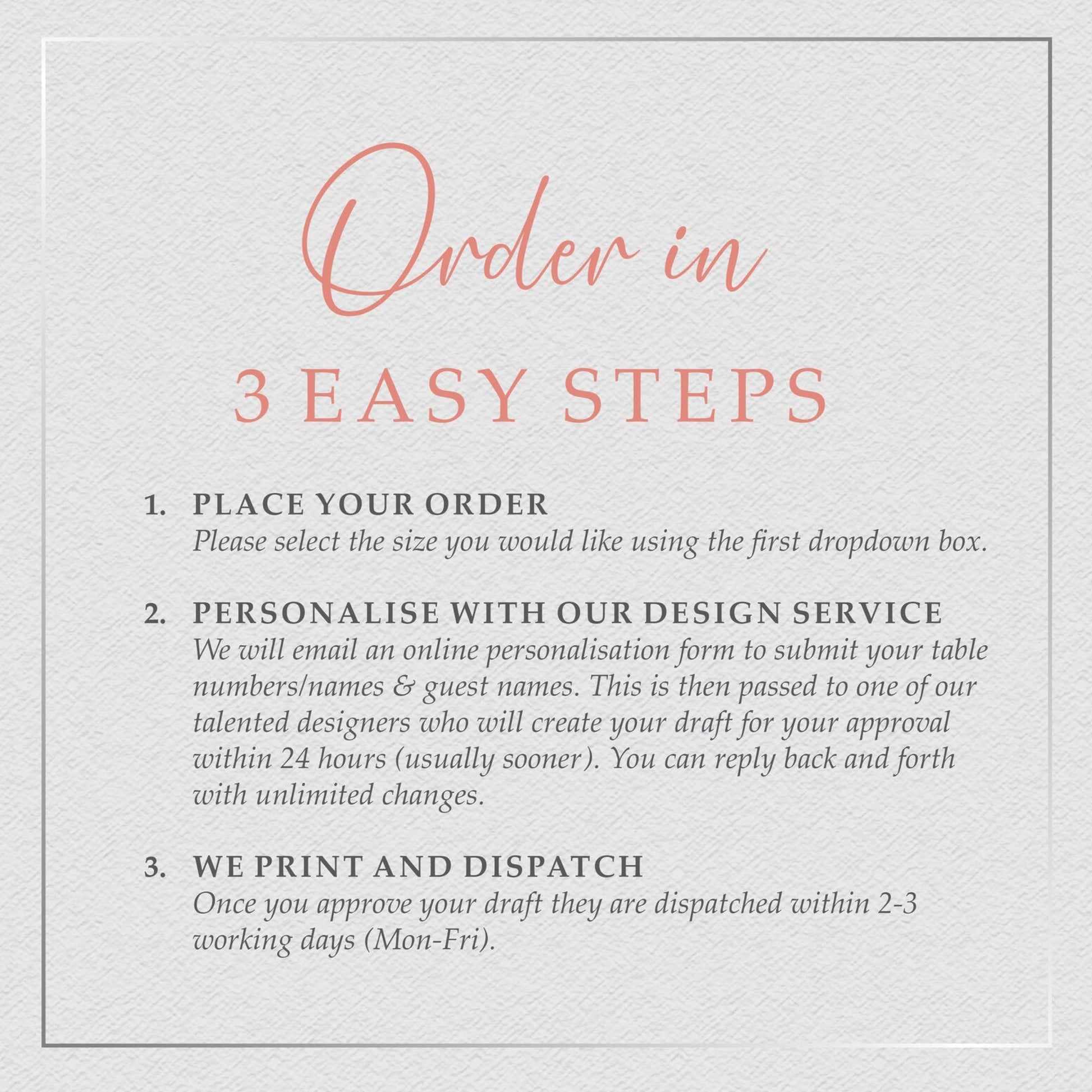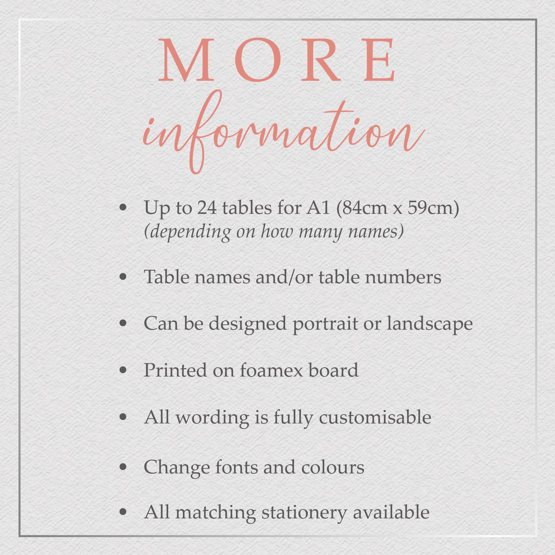Our table plans are the perfect way to clearly inform your guests where they are seated.